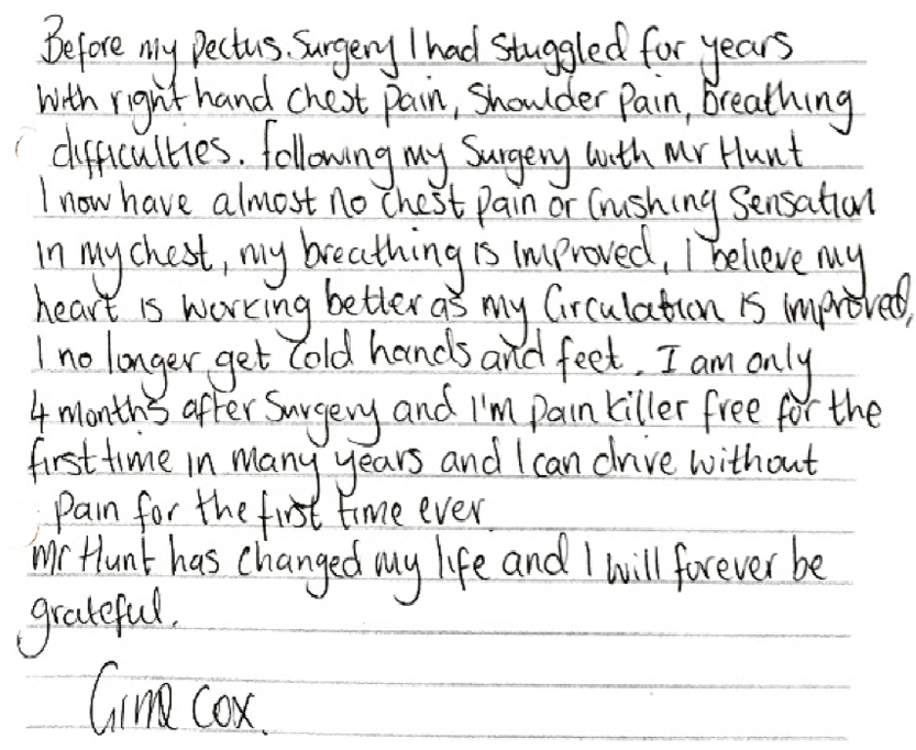 Post operative photos (D) 2 weeks after surgery and Gina’s thoughts after several months.
