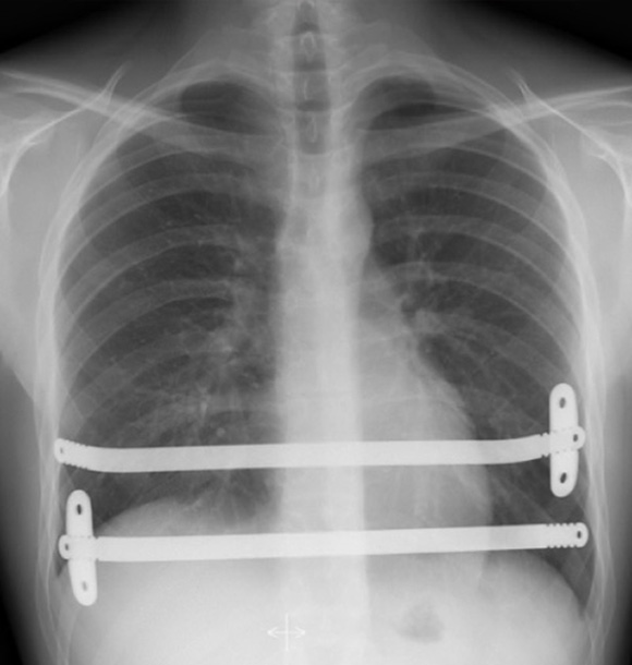 Following the operation (see video) which take anywhere between 1 to 3 hours a chest x-ray is performed to confirm position of the bar and lungs are fully re-inflated.